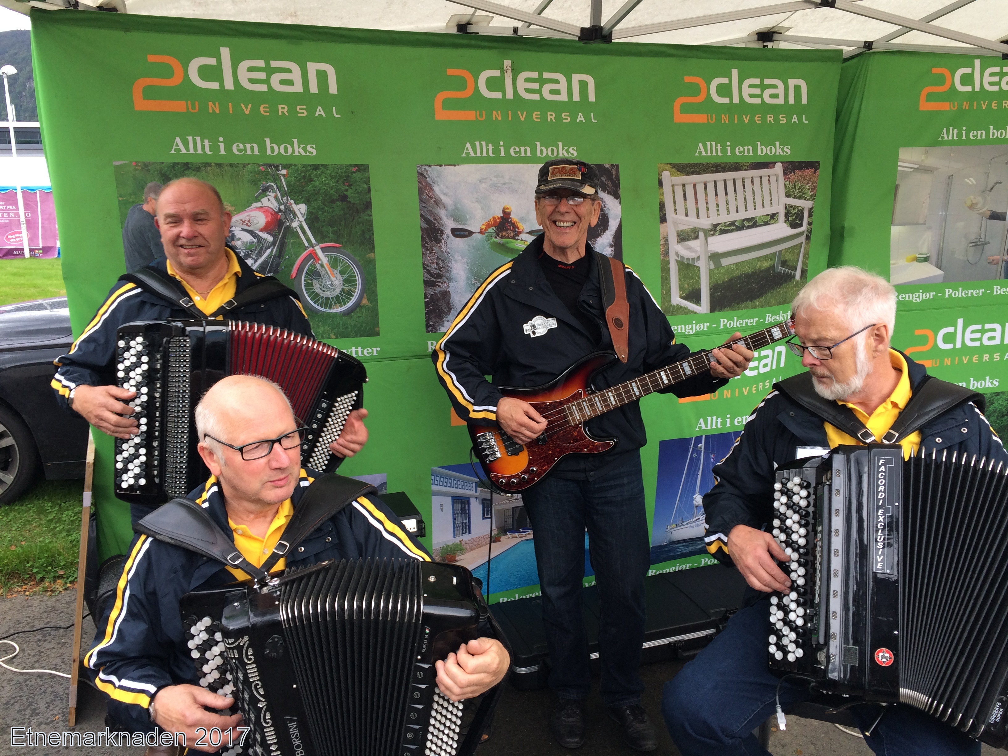 Også i år hadde vi gleden av å spille for Kiwanis under deres familiedag i Haraldsvang i Haugesund. Værgudene var ikke på hverken Kiwanis eller Haugaland Trekkspillklubb sin side denne dagen, men folk hadde kledd seg for været, og oppmøte var imponerende likevel. De minste så ut til å trives med alle de aktivitetene som var tilgjengelige for dem, og de voksne fikk seg kaffe og kaker, for ikke å glømme pølse i brød.