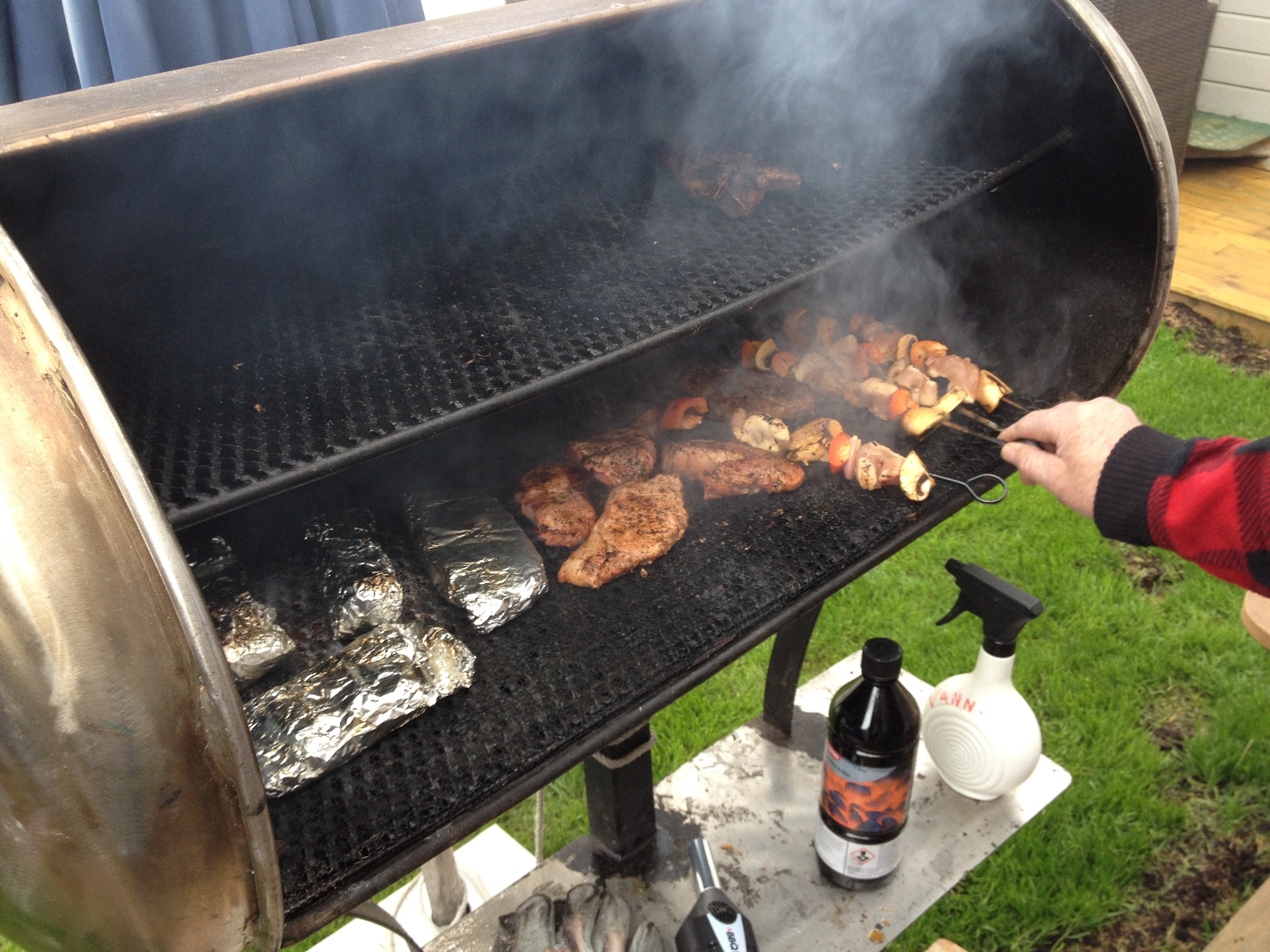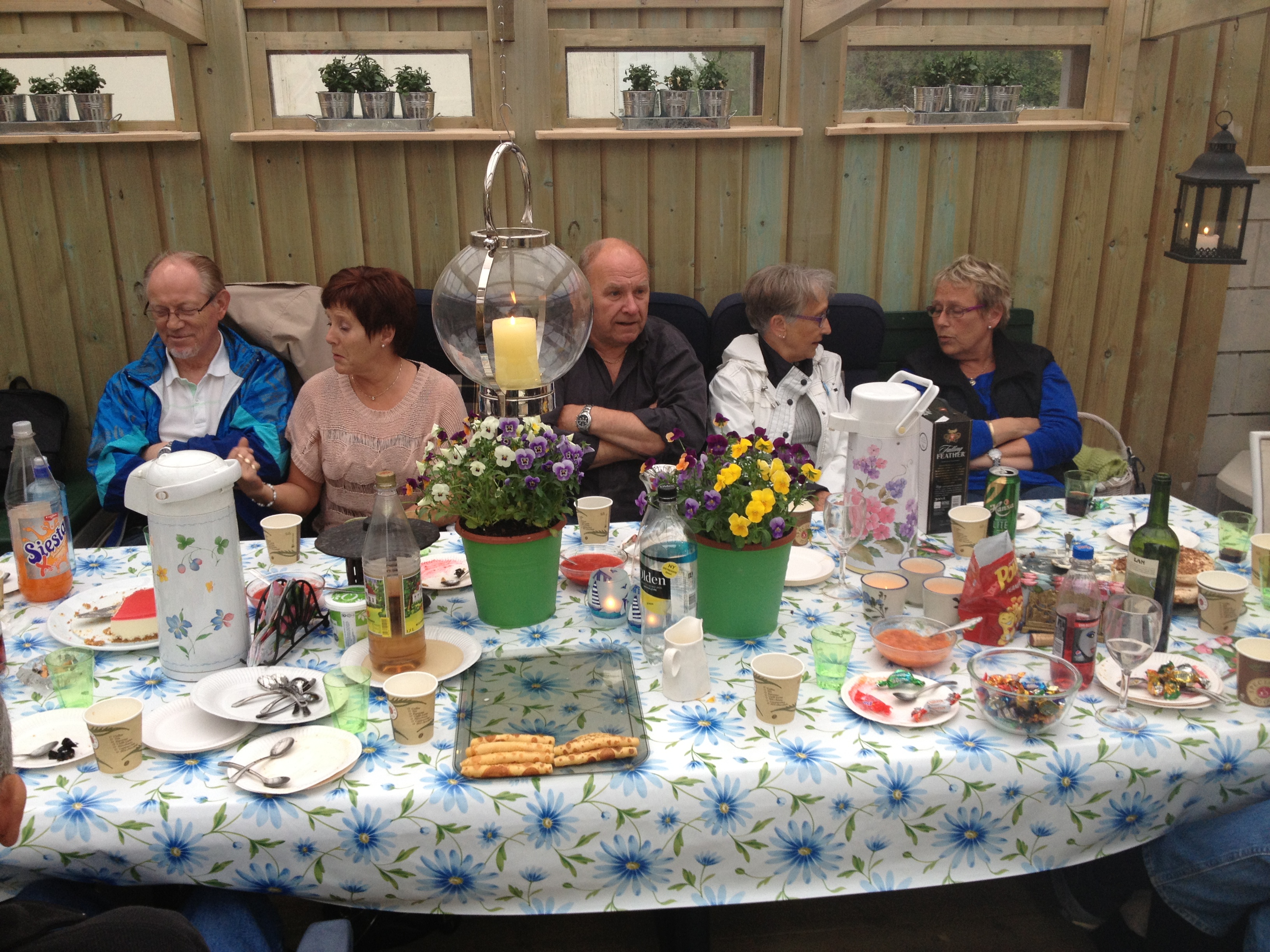 Grillen var fyrt opp, pølser funnet fram i stor mengde, og alt tilbehør sto klart til at vi kunne forsyne oss. Til kaffen litt senere var kakene satt fram.