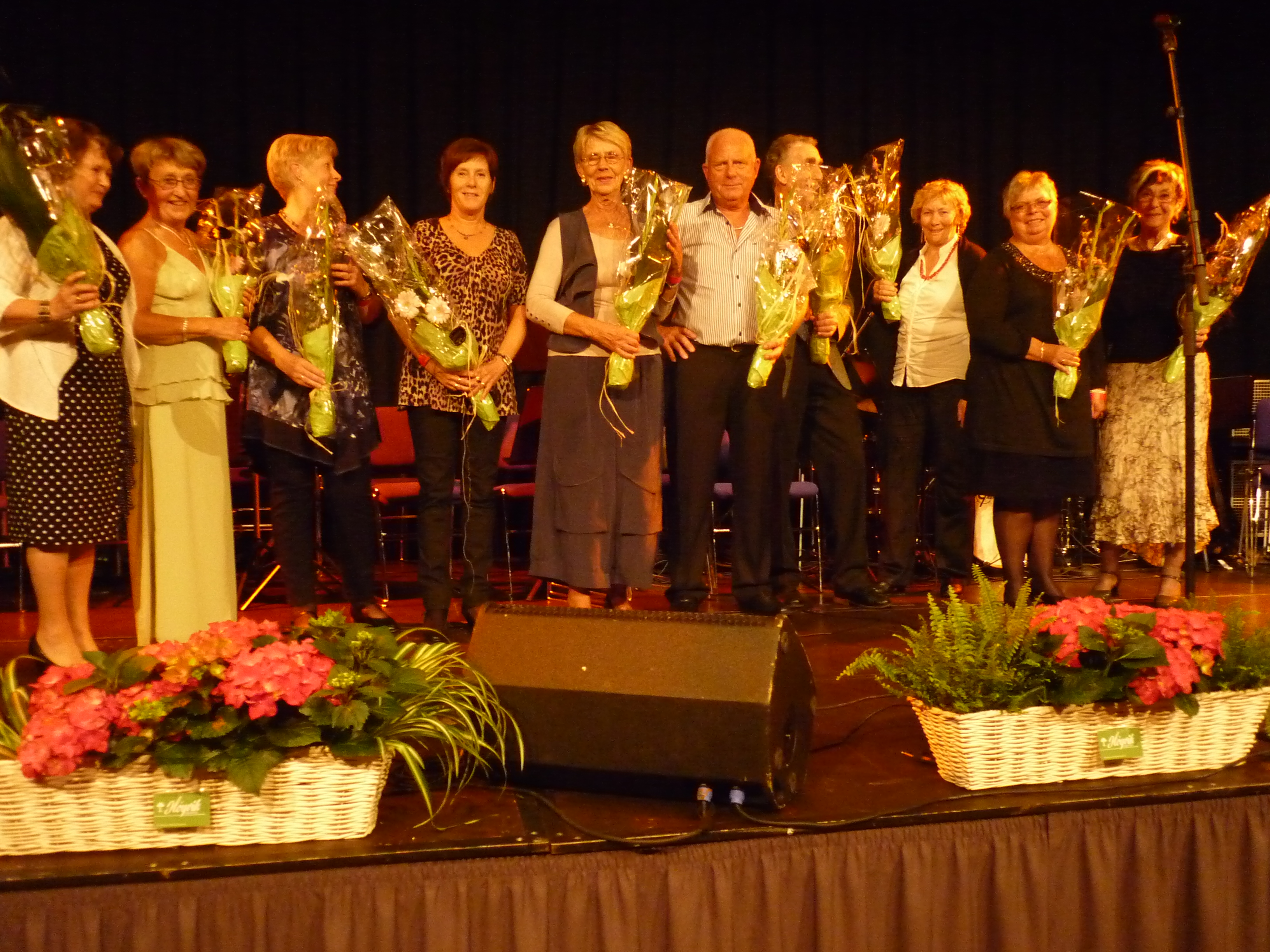 Litt forsinket lørdag kveld startet vi dansen, hvor samme aktører som fredag deltok. Til avslutning begge kveldene ble det fellesnummre, hvor scenen i Maritim Hall var stappfull av musikere. Dette er noe de fleste musikere liker, og det gir publikum et ordentlig musikalsk «trøkk». Haugaland Trekkspillklubb mottok mange fine ord og gaver fra våre gjesteklubber, og Trekkspillforbundet, i anledning 30 års jubileet vårt. Det takker vi selvsagt for her også.