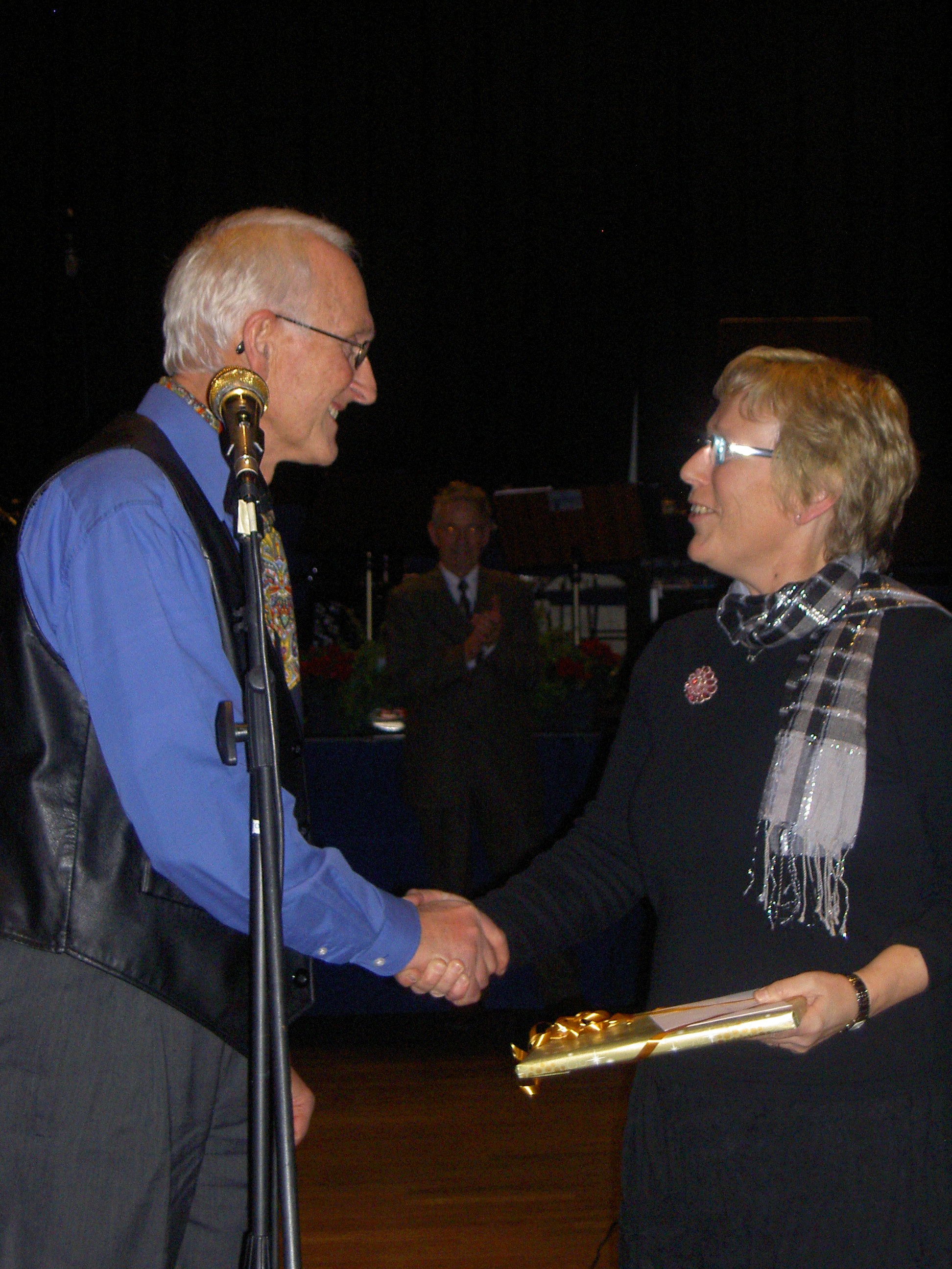 Konfransier Nils Lyngnes hadde et godt «grep» om arrangementet, med historier og morsomme vitser, så vi ble ledet trygt og komfertabelt gjennom kvelden. Det ble også selvsagt avsatt tid til dans for å få «ristet» ned julematen. Haugaland Trekkspillklubb deltok selvsagt med en spilleøkt, men det var Sverre Eilertsen som besørget musikken denne kvelden. Godt hjulpet av klubbens dyktige batterist Rolf Blikshavn. Det ble utdelt blomster til de av damene våre som har vært aktivt med og jobbet gjennom mange år, og sørget for at våre danser har blitt avviklet uten problemer. Vår musikalske leder Alf Nornes ble overrakt en gave fra klubben for utrettelig innsats gjennom mange år. Når våre gjester kommer og takker oss for en meget hyggelig aften, og en representant for Nyvena i Haugesund vil anbefale sine medlemmer å komme til Haugaland Trekkspillklubb sine arrangementer, må vi vel si at alt var vellykket.