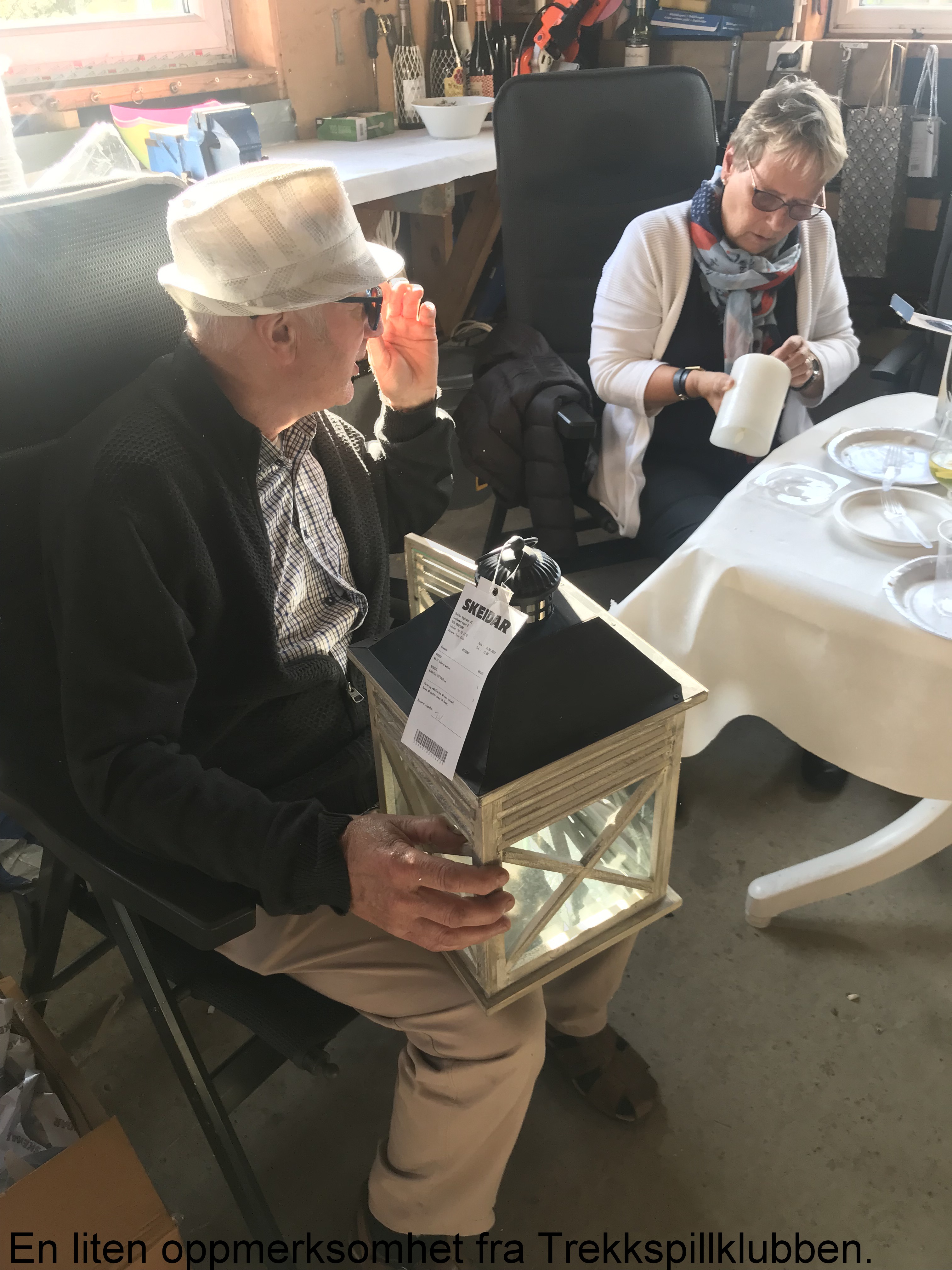Vi ble invitert hjem til et av våre medlemmer, Daniel Thuestad og frue, til en ekstra avslutning av vårsesongen. De hadde rigget til i sin store garasje med langborder og stoler, slik at alt var lagt til rette før vi kom.