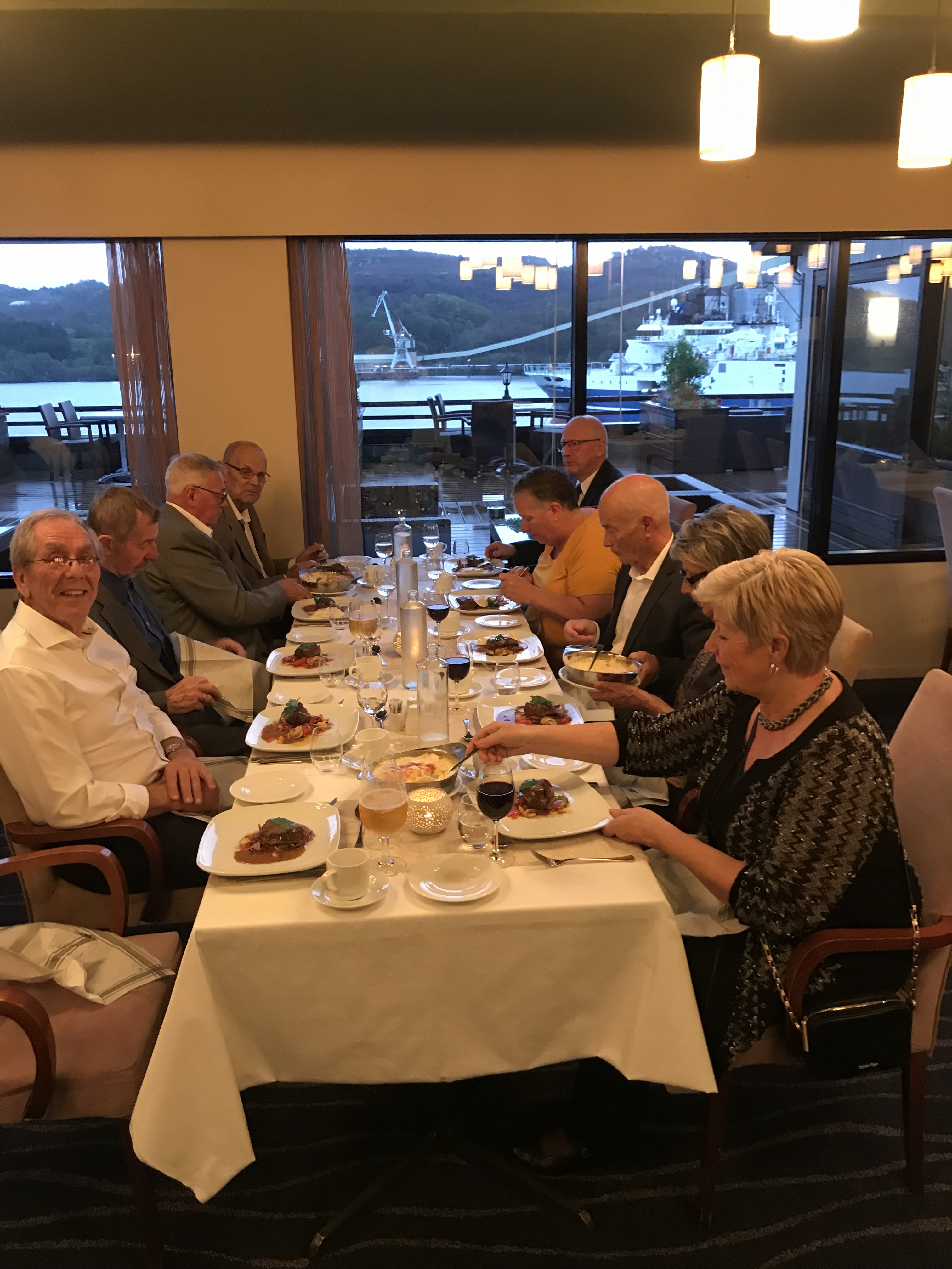 Under middagen var det en «musikalsk reise» fra 60/70 tallet og fram til idag, framført av dyktig konfransier, flinke musikere og vokalister. Da maten var unnagjort ble det rigget til dans med samme musikere og vokalister som under den «musikalske reisen». I tillegg var det levende musikk i pianobaren. Alt i alt en helt super helg som gjerne kan gjentas ved en senere anledning.