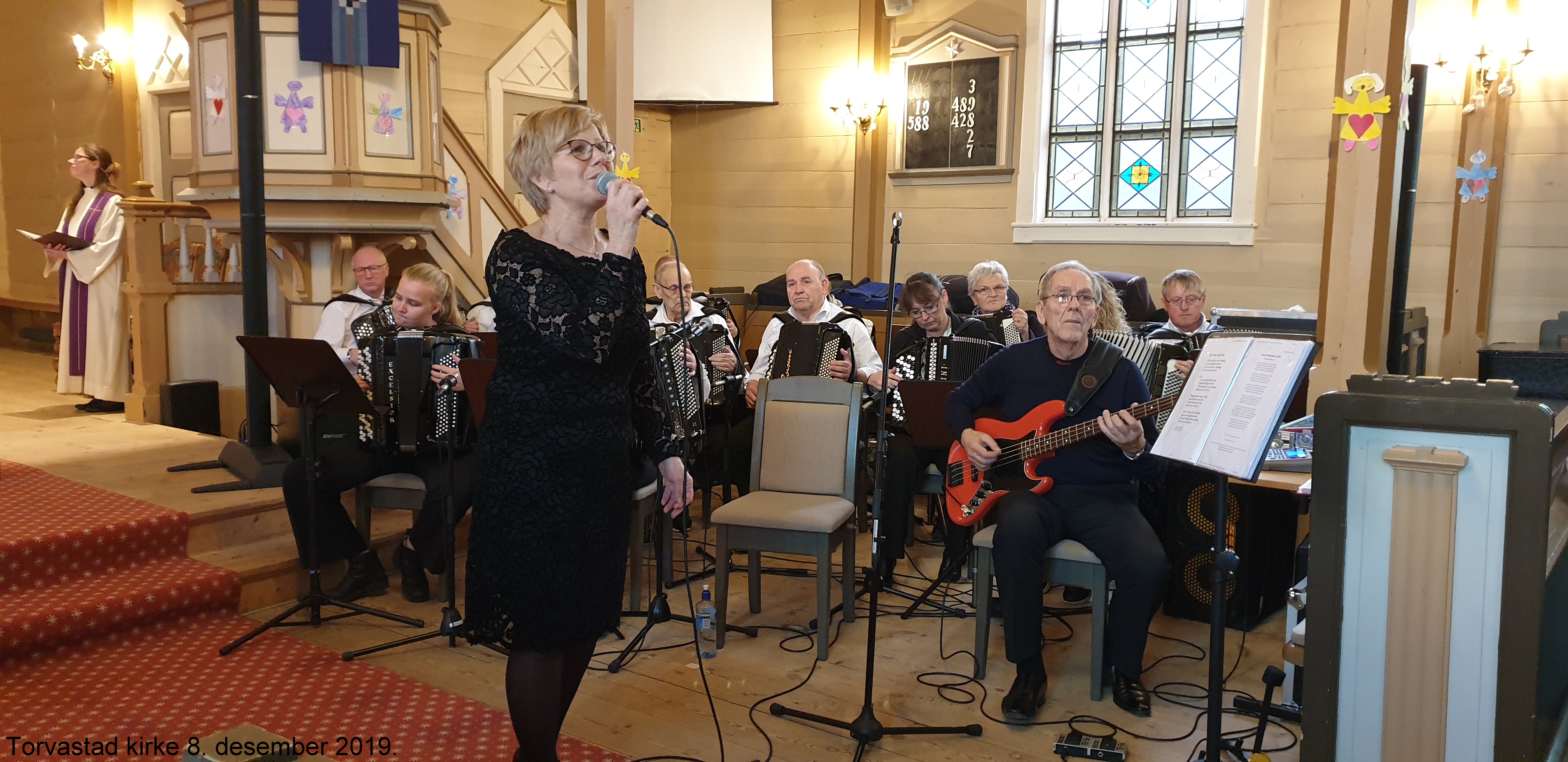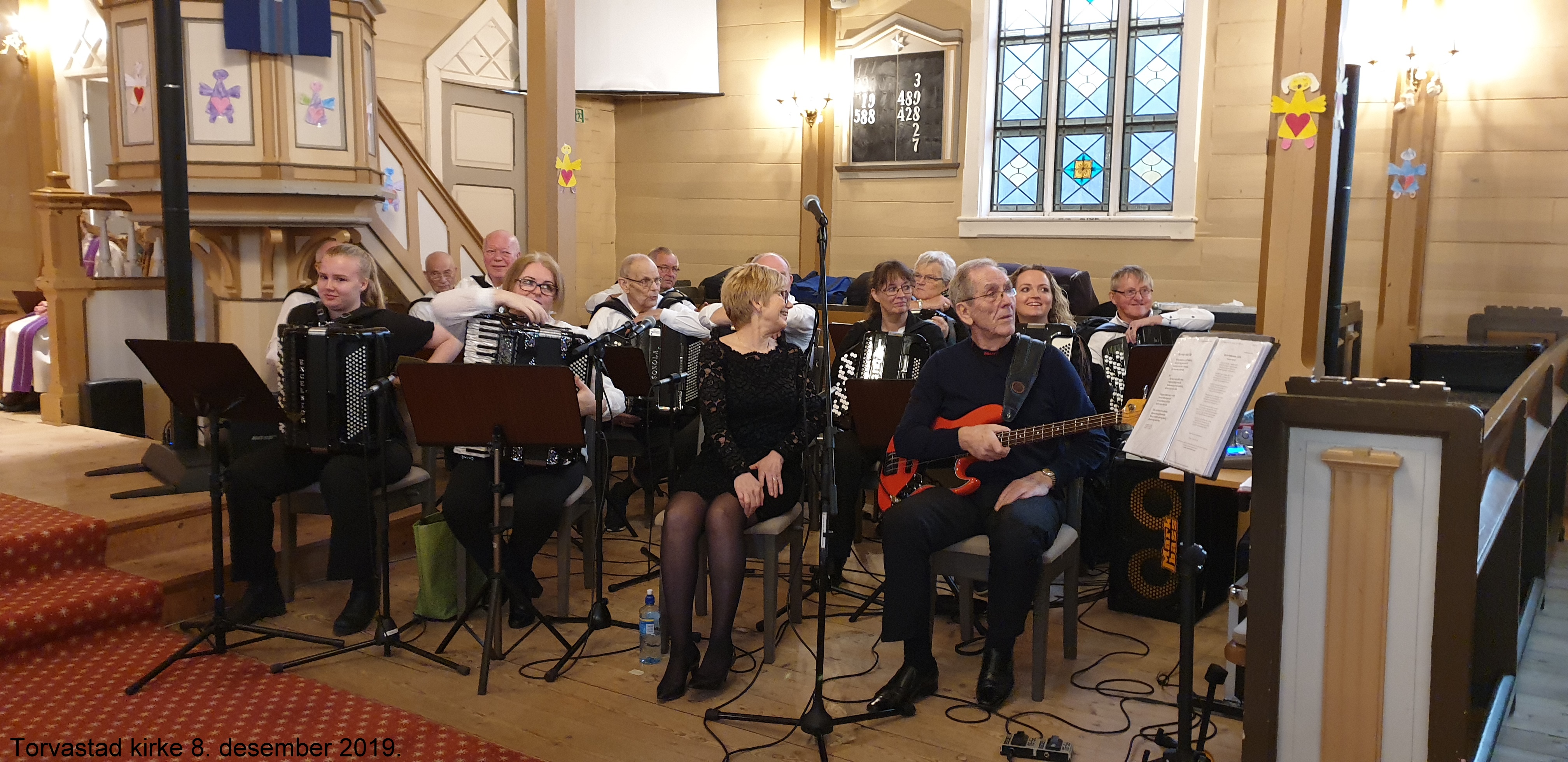 Haugaland Trekkspillklubb hadde gleden av å spille i Torvastad Kirke i forbindelse med Gudstjeneste og dåp søndag 8. desember 2019. Melodiene var valgt ut i samråd med kirkens organist og prest, og var følgende: